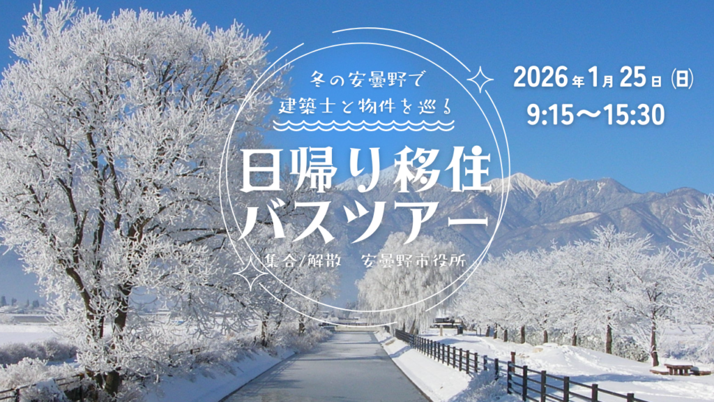 安曇野市空き家バンク掲載物件の中古物件を建築士さんの目線で解説してもらいながら内覧する日帰りバスツアー。『安曇野の冬の寒さや雪の多さ…』その疑問に身を持って体感してください!!