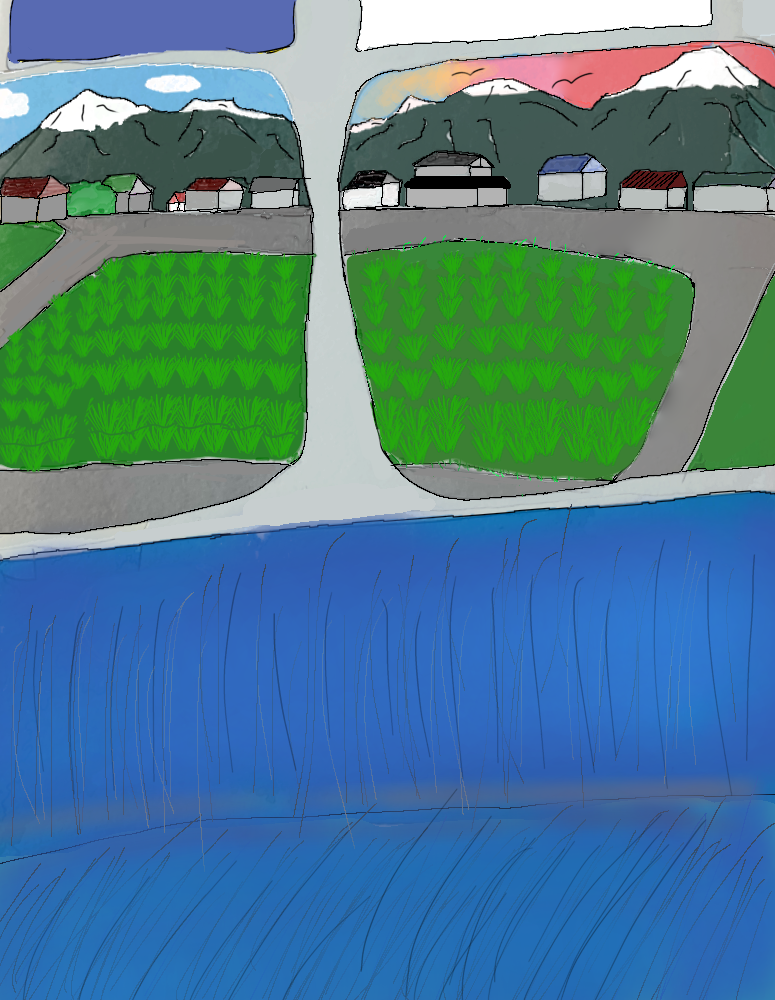 僕のこの絵への想いは多くの山々や田んぼの自然が多くあると言うことを表現していきたかったためこのような絵を描きました。僕のおすすめのとしてはそばをおすすめします。是非安曇野へ訪れてみてください。
