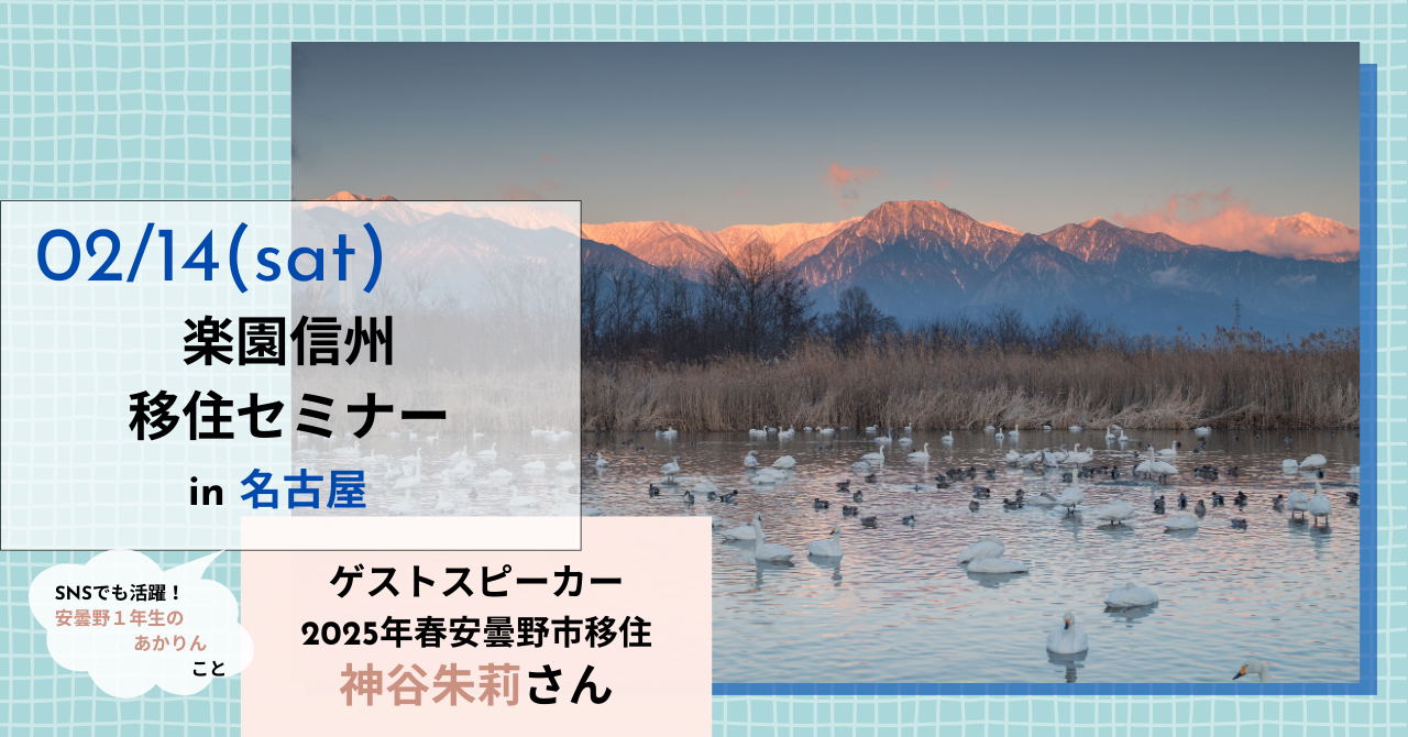 ゲストスピーカーには、愛知県西尾市から安曇野市へ移住し、X(旧Twitter)のフォロワー数8,000人を超える「安曇野1年生のあかりん」こと、神谷 朱莉さんが登壇!移住のきっかけ、子育てについて、お仕事について、現在の暮らしぶりなどをお話しいただきます。