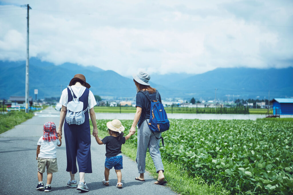 安曇野市には、北アルプスの山々や清流、田園風景に囲まれ、四季をはっきりと感じながら五感を育み、子供がのびのびと成長できる環境がそろっています。