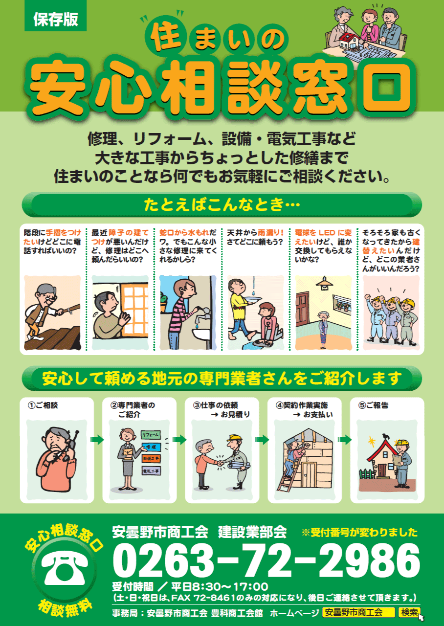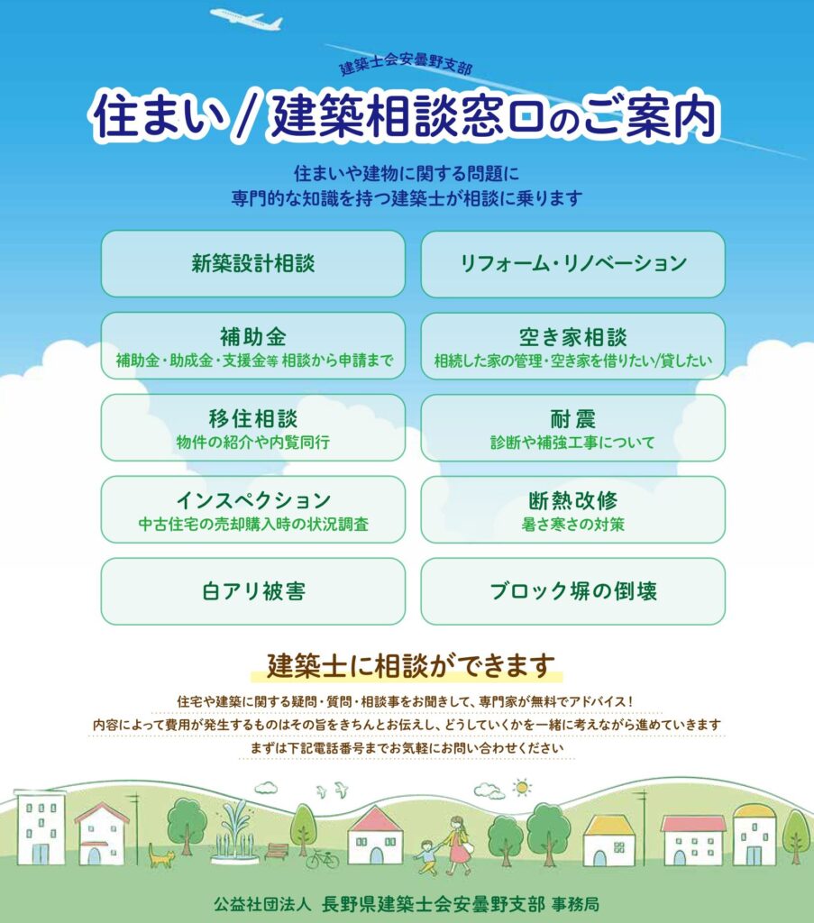 市の移住相談窓口では、安曇野市空き家バンクの紹介をはじめ、利用できる可能性のある補助金制度についても情報提供を行っています。