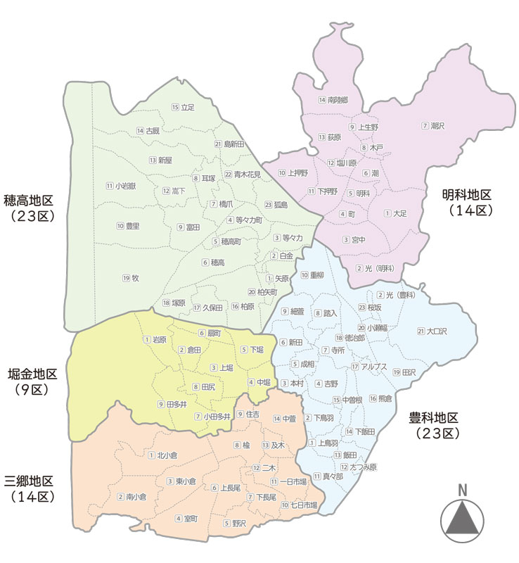 安曇野市の83区 分布図