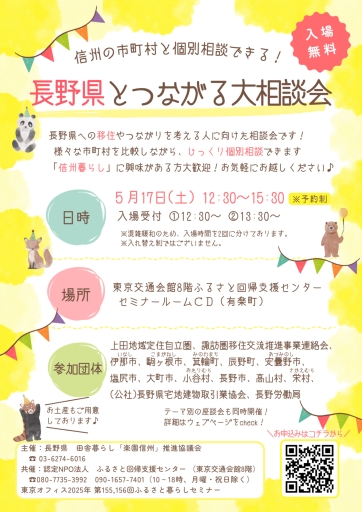 後半の相談会では、市職員による移住全般相談、不動産相談、自治会(区)の相談、先輩移住者との相談と盛りだくさん!安曇野市の移住に関する疑問がどっと解消すること間違いなしの大相談会です!
